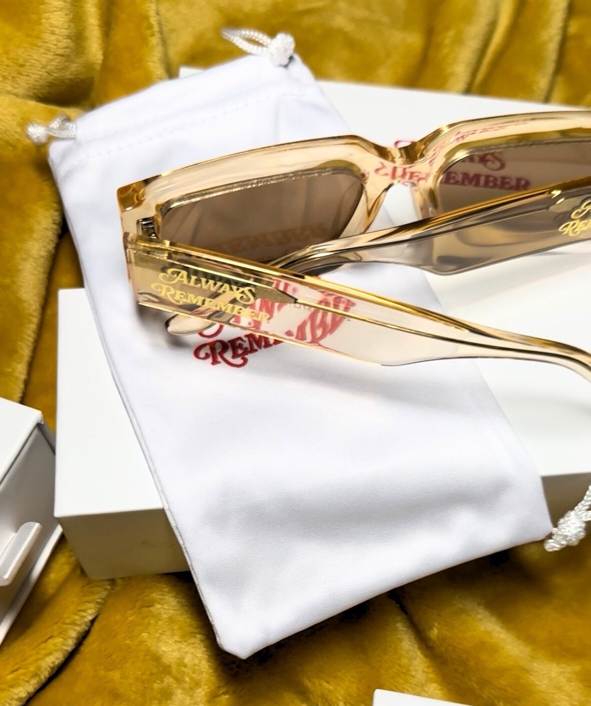 - Gold "Always Remember" logo on frame sides.